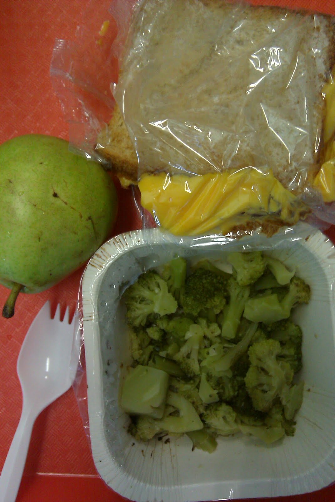 Today’s menu: cheese sandwich, broccoli, pear, milk