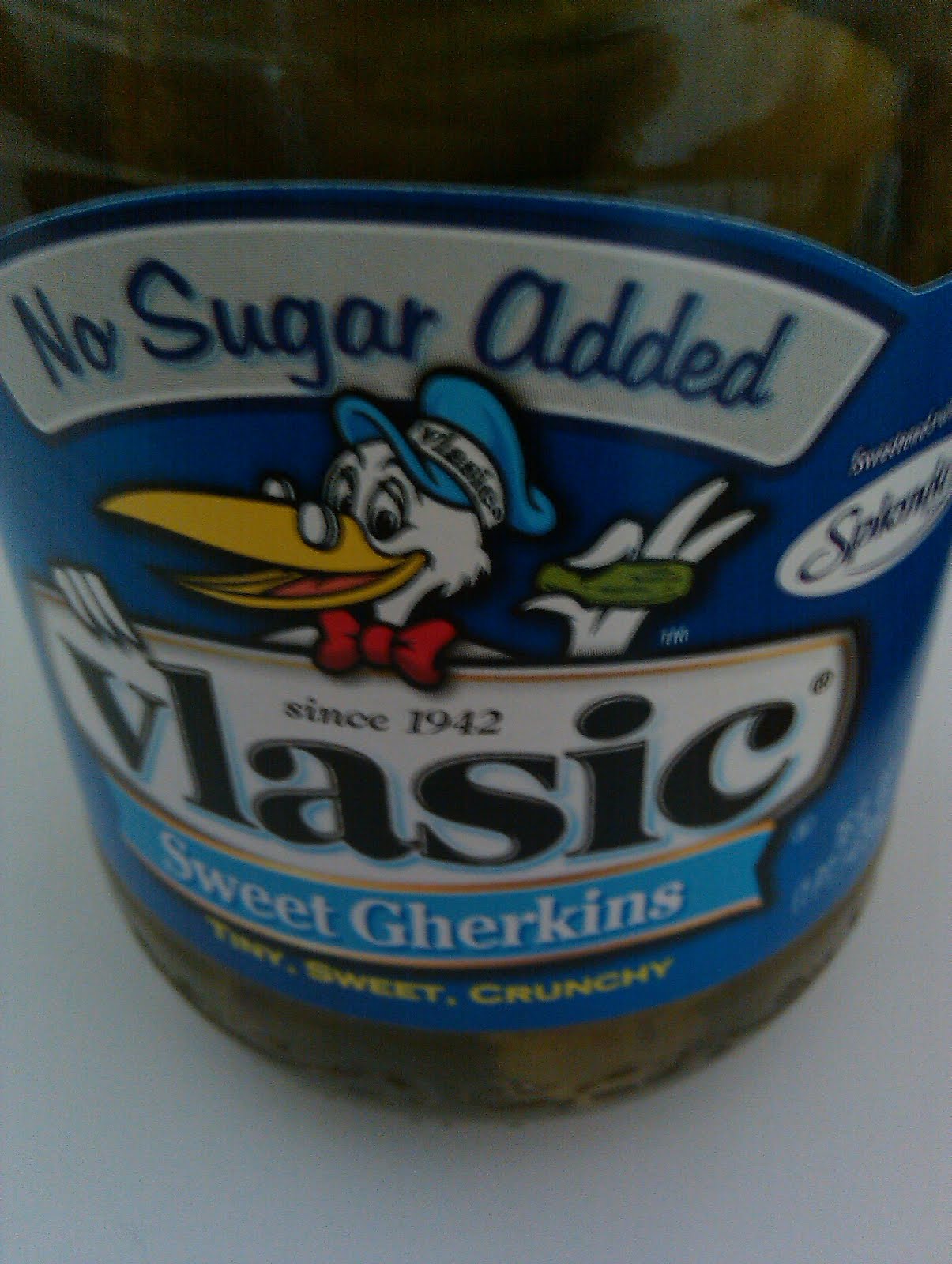 My kid loves pickles. When I was shopping for the right pickle, I saw these. I fell prey to the marketing and I bought them. I was unloading groceries and noticed that little logo to the right “Splenda.”