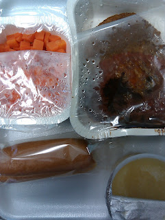 You must have been hungry after this lunch once you got over the nausea – basically you just had some bites of the "chicken" and a small dish of cubed carrots. Bon courage, Mrs Q! A couple of months more to go.