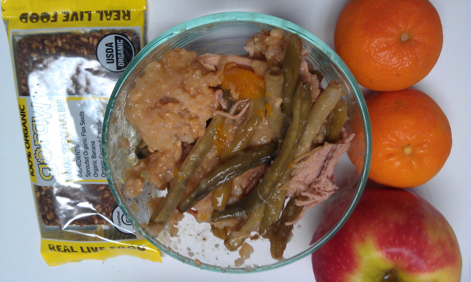 mandarin oranges, crunchy green beans, KIND bar