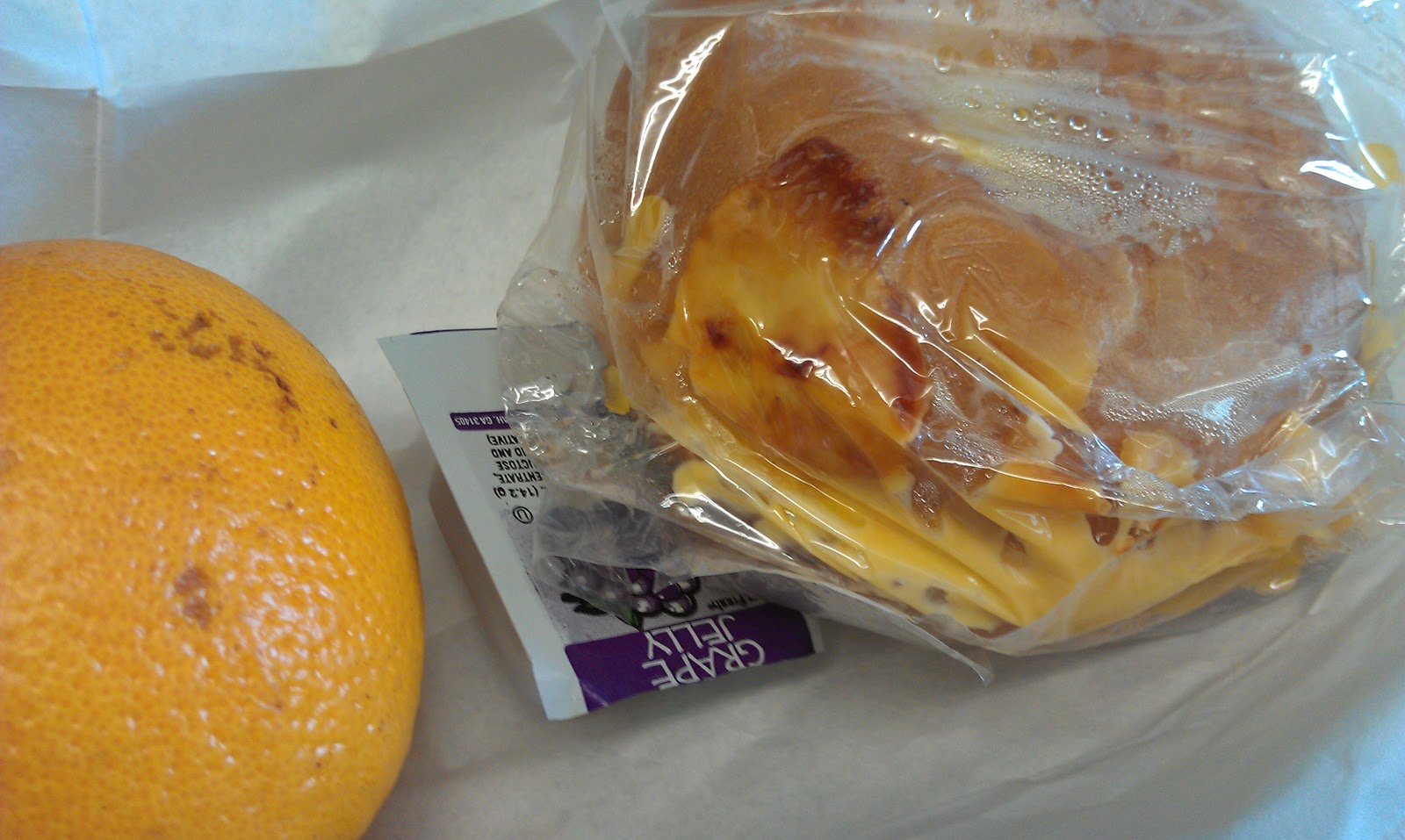 One of my students didn’t want the breakfast so I thought, “Perfect photo opp.” I opened up the sack and immediately was hit by an aroma of hot sandwich.