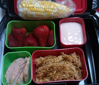 Pork tenderloin, rice, strawberries, corn and yogurt