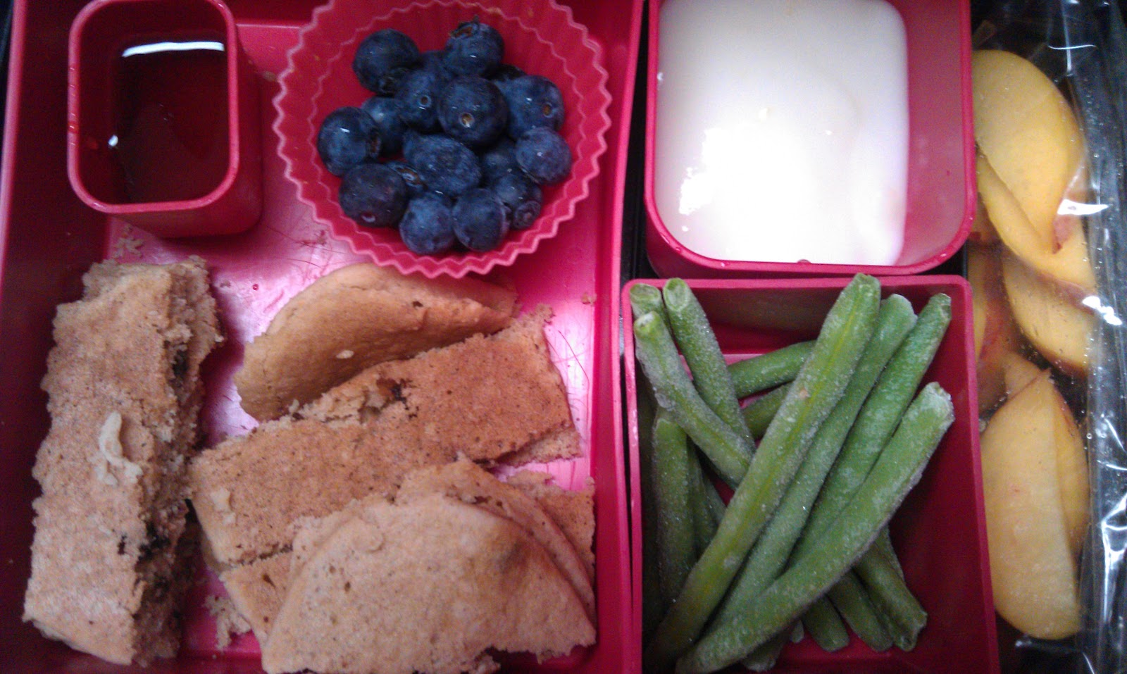My son has been begging for pancakes so I finally got my act together and sent one with him. Day care menu: Ham and beans, mandarin oranges, peas with fruit and yogurt as snacks.